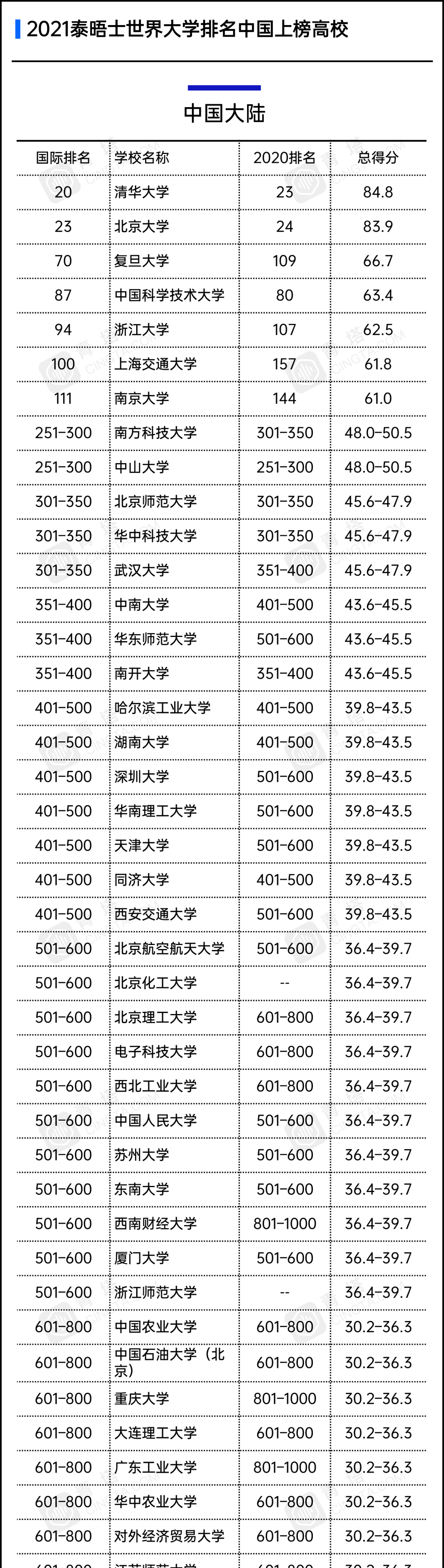 最新公布:内地大学进入世界排名前100的数量,比去年翻一番