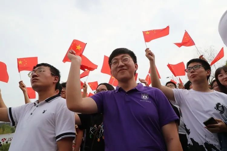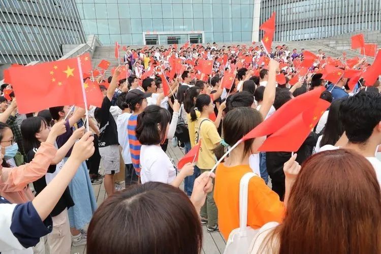 合唱进入高潮,鲜艳的五星红旗在人潮中徐徐展开,南大人爱国之情高涨。