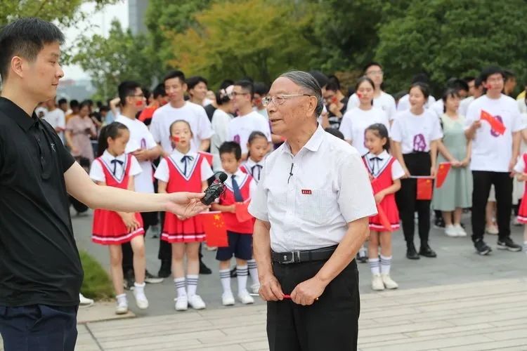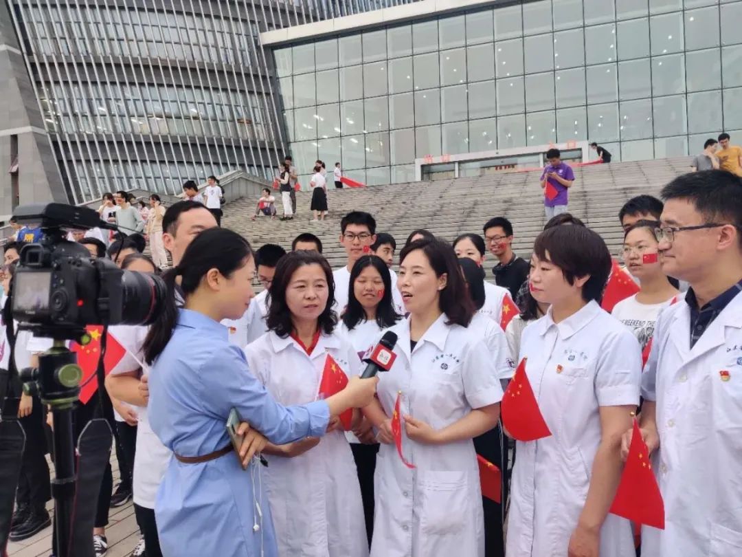 快闪活动临近结束,江苏电视台对陈洪渊院士、都有为院士、江苏援黄石医疗队总指挥鲁翔院长和省人民医院刘云副院长进行了采访。